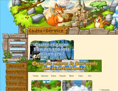 Il existe d’autres jeux accessibles avec d’autres monnaies, les Serv’code. Super-parrain coûte 1 Serv’code, La tirelire, La tombola, Offrande à Cody et Le loto coûte respectivement, 1, 10, 50 et 50 Serv’code.